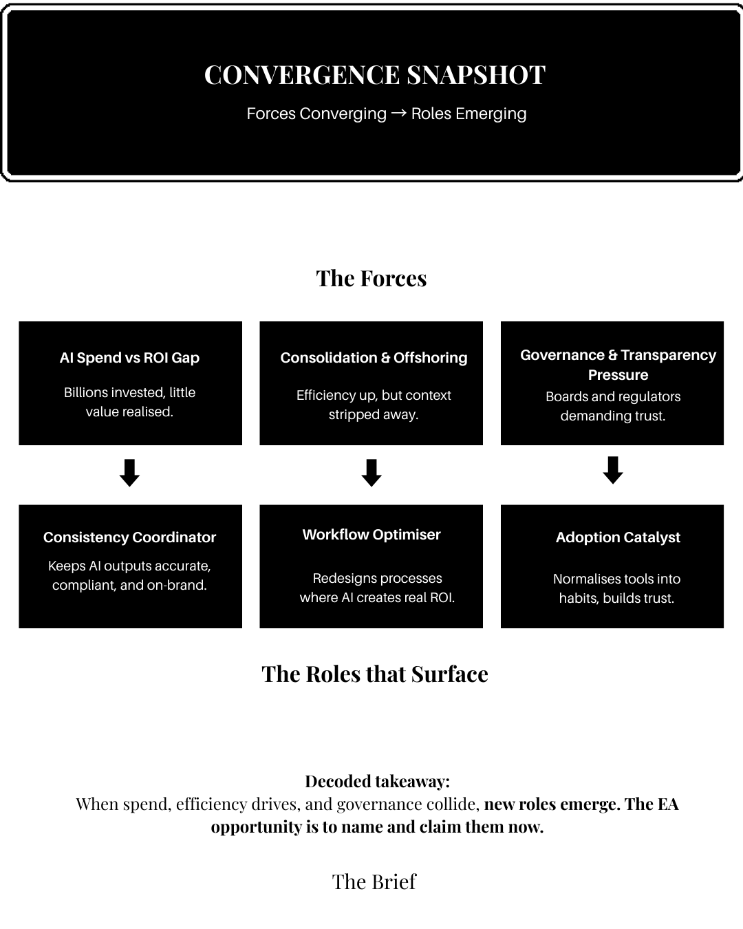This edition is about invisible roles — the adoption catalysts, consistency coordinators, and workflow optimisers that don’t yet have names on paper. But claiming space in these areas isn’t about announcing “I’ll do it.” It’s about connecting the dots between what you see, the risks you can head off, and the business benefits that matter right now.